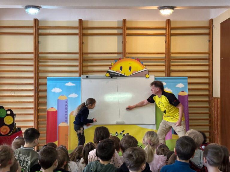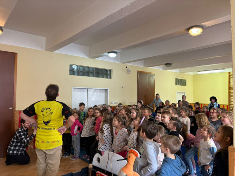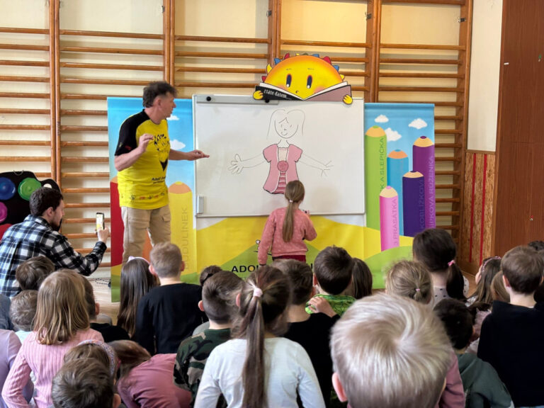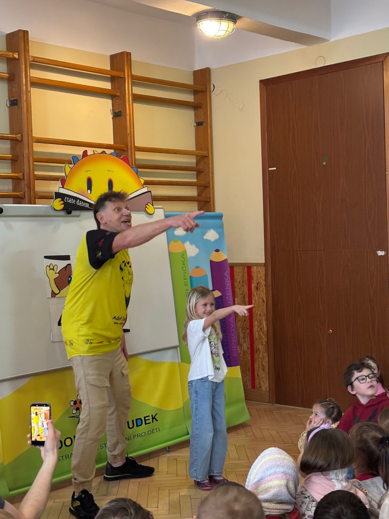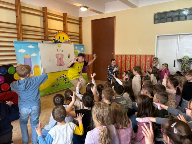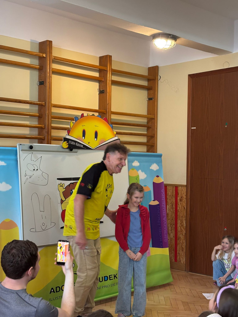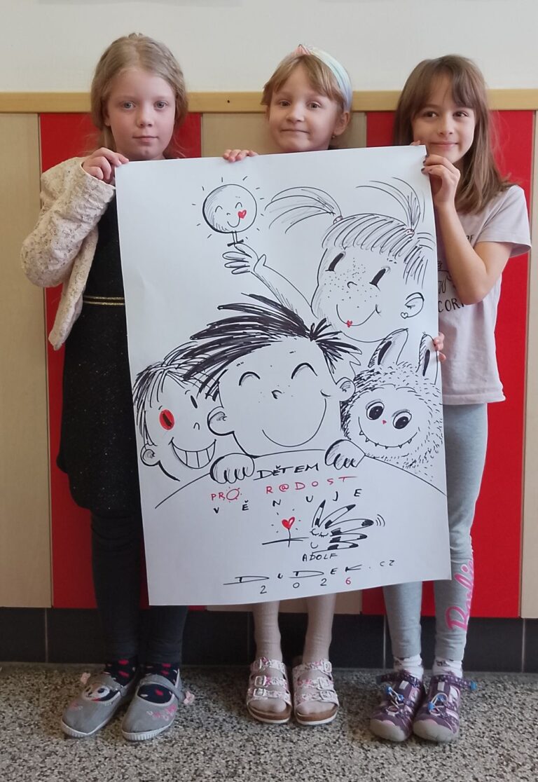 Pochmurné únorové dny nám přišel do školní družiny rozzářit ilustrátor dětských knih Adolf Dudek. Na vystoupení malíře se vždy všichni moc těšíme. Jeho gejzír energie a nápadů je nakažlivý a inspirující. Letošní setkání proběhlo v úterý 24. února. Ilustrátor nás s humorem sobě vlastním provázel pohádkovým světem: osvobodili jsme zakletou Šípkovou Růženku, fandili Koblížkovi, ať uteče mlsným zvířátkům, zdobili jsme perníčky na perníkové chaloupce a doufali, že dědeček s pomocníky vytáhne velikou řepu. Na této pohádkové cestě Adolfu Dudkovi s radostí pomáhaly i naše děti. Vystoupení bylo protkáno spoustou vtípků, písniček a říkanek. Nechyběla ani pantomima a pohyb. Prostě vystoupení pro děti, tak jak má být. Tak zase za rok!