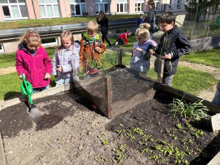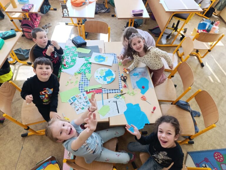 Tvořivé týmy přispěly k celkovému hodnocení výrobky na téma Den Země. Vznikaly plakáty, ptačí budky, krmítka pro ptáky či výrobky v duchu upcyklace. Některé skupiny vyrazily do přírody, jiné se zapojily do úklidu okolí řeky Lomné či okolí školy, vysévaly semínka rostlin a upravovaly záhonky v přírodní učebně. Do oslav se zapojili také žáci třetích tříd, kteří byli na škole v přírodě na Bílé a poslali nám pozdravy v podobě fotografií se vzkazy pro Zemi.