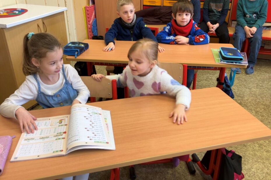 V uplynulých dnech čekala na naše předškoláky velká událost – návštěva základní školy. Děti z mateřské školy se vydaly na návštěvu do Základní školy Tyršova, aby se seznámily s prostředím, které je po prázdninách přivítá jako nové prvňáčky. Naši malí návštěvníci měli možnost nahlédnout přímo do vyučování a sledovat ukázkovou hodinu. Usedli do lavic mezi školáky a pozorně sledovali, jak probíhá výuka. Nezůstalo však jen u pozorování – děti se do činností samy aktivně zapojily. Společně s prvňáčky zpívaly písničky, procvičovaly písmenka i čísla, zkoušely si psát na tabuli a kreslily obrázky. Velmi nás potěšilo, s jakou ochotou a radostí žáci 1. třídy našim dětem pomáhali. Trpělivě jim vysvětlovali úkoly, ukazovali správné držení tužky a podporovali je v jejich snaze. Atmosféra byla přátelská, veselá a plná povzbuzení. Celé setkání probíhalo hravou formou, aby si děti mohly školní prostředí vyzkoušet bez obav a s radostí. Měly možnost poznat nejen třídu a paní učitelku, ale i běžný režim vyučovací hodiny. Pro mnohé to bylo první opravdové setkání se školou, které jim pomohlo odbourat počáteční ostych. Návštěva se velmi vydařila a děti odcházely plné dojmů, nadšení a nových zkušeností. Věříme, že jim tato milá zkušenost usnadní budoucí vstup do školy a že se na svou novou roli školáků budou těšit. Děkujeme paní učitelce i žákům 1. třídy za vřelé přijetí a krásně připravený program.