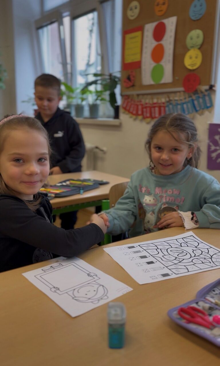V uplynulých dnech čekala na naše předškoláky velká událost – návštěva základní školy. Děti z mateřské školy se vydaly na návštěvu do Základní školy Tyršova, aby se seznámily s prostředím, které je po prázdninách přivítá jako nové prvňáčky. Naši malí návštěvníci měli možnost nahlédnout přímo do vyučování a sledovat ukázkovou hodinu. Usedli do lavic mezi školáky a pozorně sledovali, jak probíhá výuka. Nezůstalo však jen u pozorování – děti se do činností samy aktivně zapojily. Společně s prvňáčky zpívaly písničky, procvičovaly písmenka i čísla, zkoušely si psát na tabuli a kreslily obrázky. Velmi nás potěšilo, s jakou ochotou a radostí žáci 1. třídy našim dětem pomáhali. Trpělivě jim vysvětlovali úkoly, ukazovali správné držení tužky a podporovali je v jejich snaze. Atmosféra byla přátelská, veselá a plná povzbuzení. Celé setkání probíhalo hravou formou, aby si děti mohly školní prostředí vyzkoušet bez obav a s radostí. Měly možnost poznat nejen třídu a paní učitelku, ale i běžný režim vyučovací hodiny. Pro mnohé to bylo první opravdové setkání se školou, které jim pomohlo odbourat počáteční ostych. Návštěva se velmi vydařila a děti odcházely plné dojmů, nadšení a nových zkušeností. Věříme, že jim tato milá zkušenost usnadní budoucí vstup do školy a že se na svou novou roli školáků budou těšit. Děkujeme paní učitelce i žákům 1. třídy za vřelé přijetí a krásně připravený program.