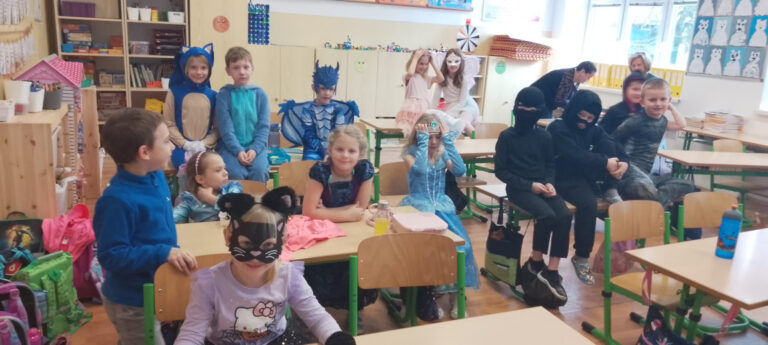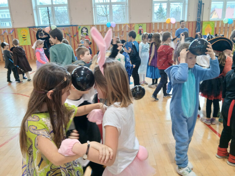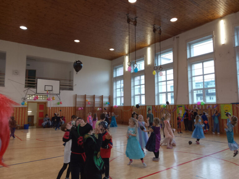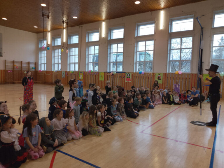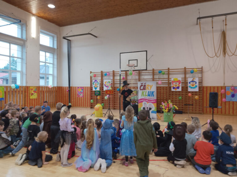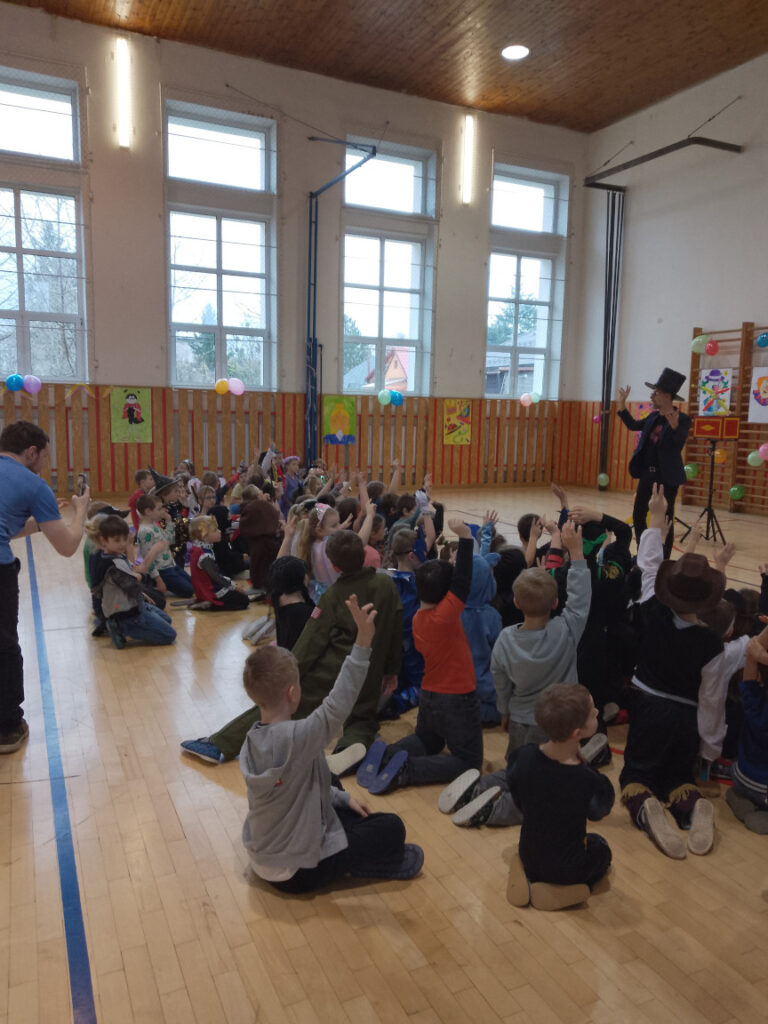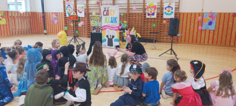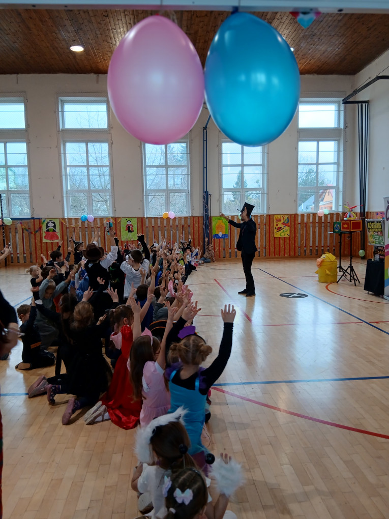 V době masopustu proběhl v naší školní družině maškarní karneval. A protože nejsme pověrčiví, tak jsme karnevalový rej pořádali v pátek 13. 2. Už pár týdnů dopředu jsme s dětmi pracovali na výzdobě a společně jsme namalovali několik pohádkových bytostí. Ani malí školáčci nepodcenili přípravu a nachystali si spoustu kostýmů. V pátek už od rána s dětmi šili všichni čerti. Po obědě proběhlo nedočkavé převlékání do kostýmů a nápadité líčení obličejů. Letošní maškarní rejdění řídil kouzelník Čárykluk. Jakmile natěšené děti vstoupily do krásně nazdobené tělocvičny a usadily se, začal Čárykluk kouzlit. Do svého vystoupení zapojoval jak účastníky maškarního rejdění, tak i paní vychovatelky. Nápaditá kouzla se pravidelně střídala s diskotékou. V nabitém programu se našlo místo i na taneční a sportovní soutěžení. Všichni byli za své výkony odměněni sladkou dobrotkou. Čárykluk měl pro kluky i holky připravené malé dárečky ve formě mečů, zvířátek či květiny, vytvořené z balónků. Páteční karnevalové dovádění jsme si náramně užili. Tak zase za rok!