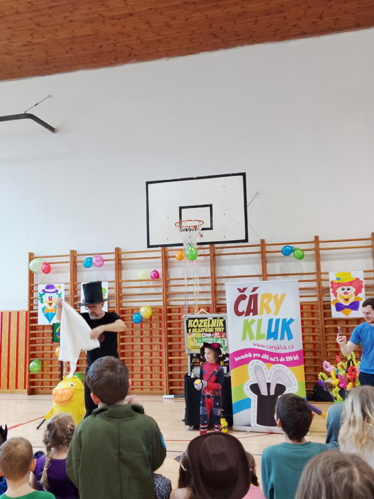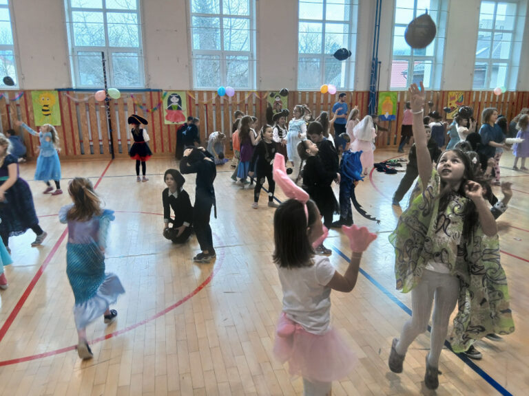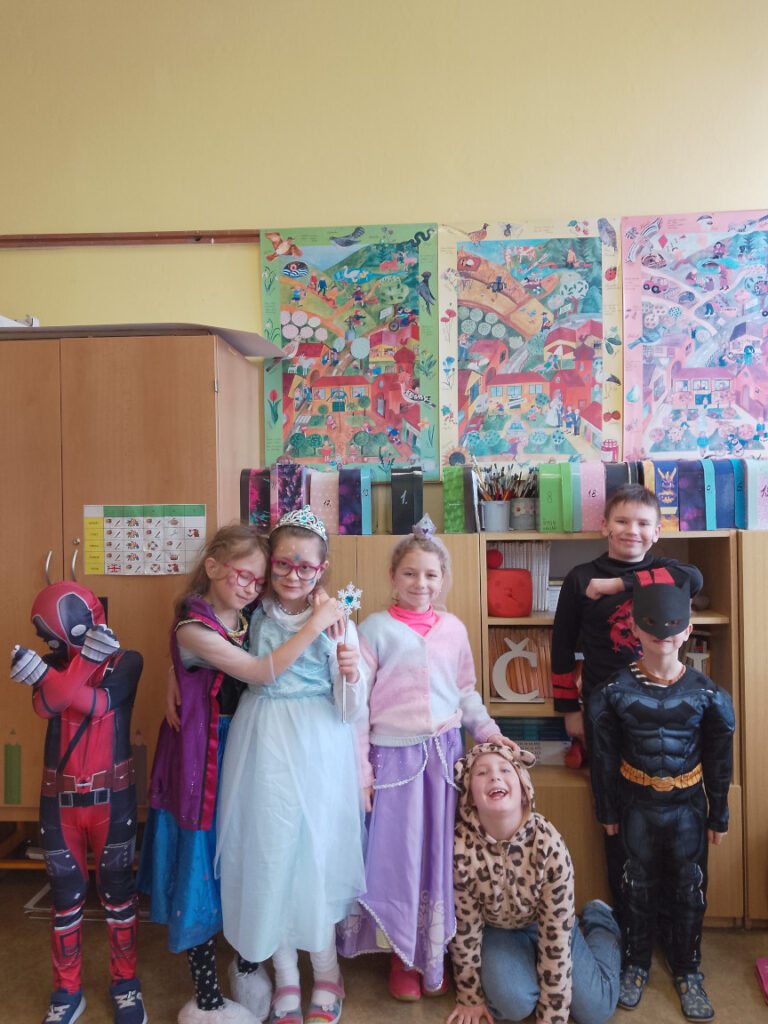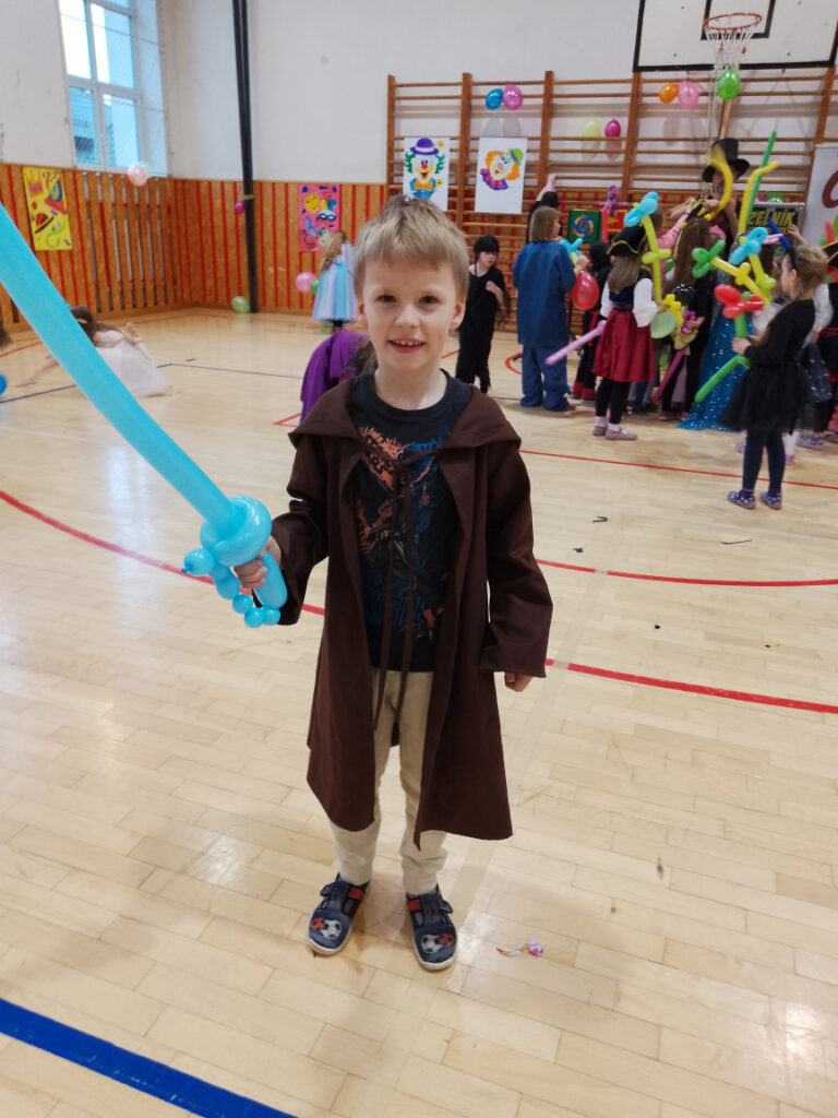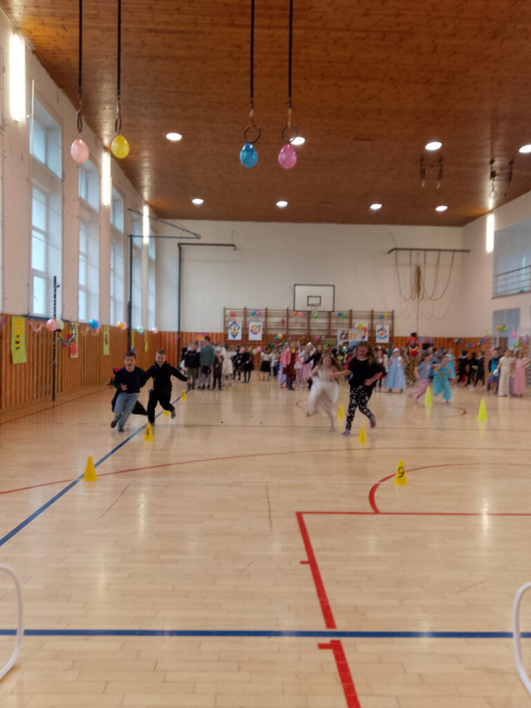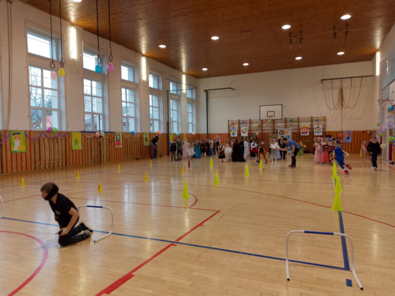 V době masopustu proběhl v naší školní družině maškarní karneval. A protože nejsme pověrčiví, tak jsme karnevalový rej pořádali v pátek 13. 2. Už pár týdnů dopředu jsme s dětmi pracovali na výzdobě a společně jsme namalovali několik pohádkových bytostí. Ani malí školáčci nepodcenili přípravu a nachystali si spoustu kostýmů. V pátek už od rána s dětmi šili všichni čerti. Po obědě proběhlo nedočkavé převlékání do kostýmů a nápadité líčení obličejů. Letošní maškarní rejdění řídil kouzelník Čárykluk. Jakmile natěšené děti vstoupily do krásně nazdobené tělocvičny a usadily se, začal Čárykluk kouzlit. Do svého vystoupení zapojoval jak účastníky maškarního rejdění, tak i paní vychovatelky. Nápaditá kouzla se pravidelně střídala s diskotékou. V nabitém programu se našlo místo i na taneční a sportovní soutěžení. Všichni byli za své výkony odměněni sladkou dobrotkou. Čárykluk měl pro kluky i holky připravené malé dárečky ve formě mečů, zvířátek či květiny, vytvořené z balónků. Páteční karnevalové dovádění jsme si náramně užili. Tak zase za rok!