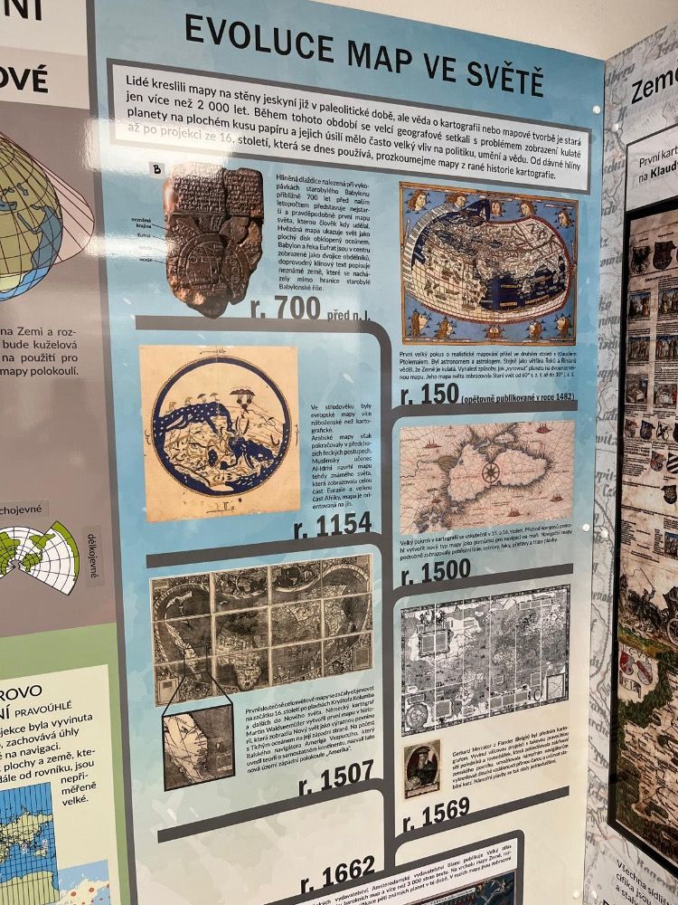 Po příjezdu nás u vstupu přivítala průvodkyně muzea, která nás provedla celou expozicí. Už od prvních okamžiků bylo jasné, že nás čeká pestrý a inspirativní program – od dávných map kreslených ručně až po moderní technologie, díky nimž dnes dokážeme sledovat svět z výšky.