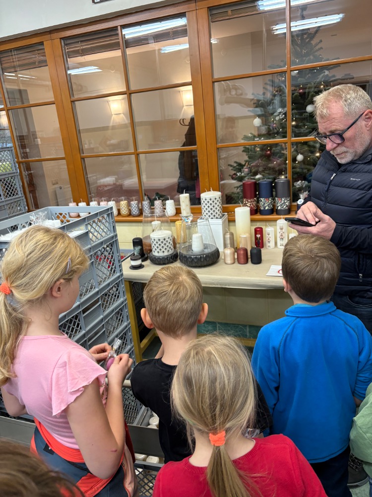 Po prohlídce výroby jsme zavítali do firemního obchůdku, kde si děti s radostí vybíraly drobné dárky pro své rodiče a blízké. Atmosféra byla opravdu kouzelná – všude voněly svíčky, zářily barvy a vánoční nálada se nesla celým prostorem.