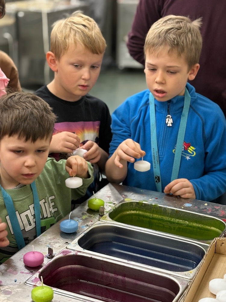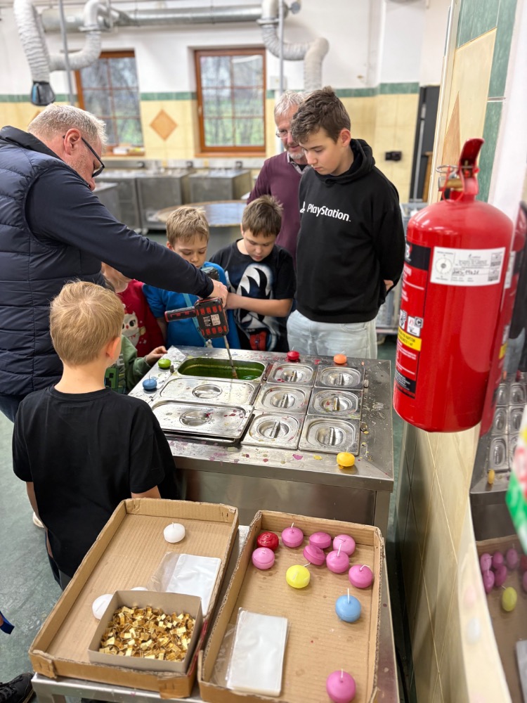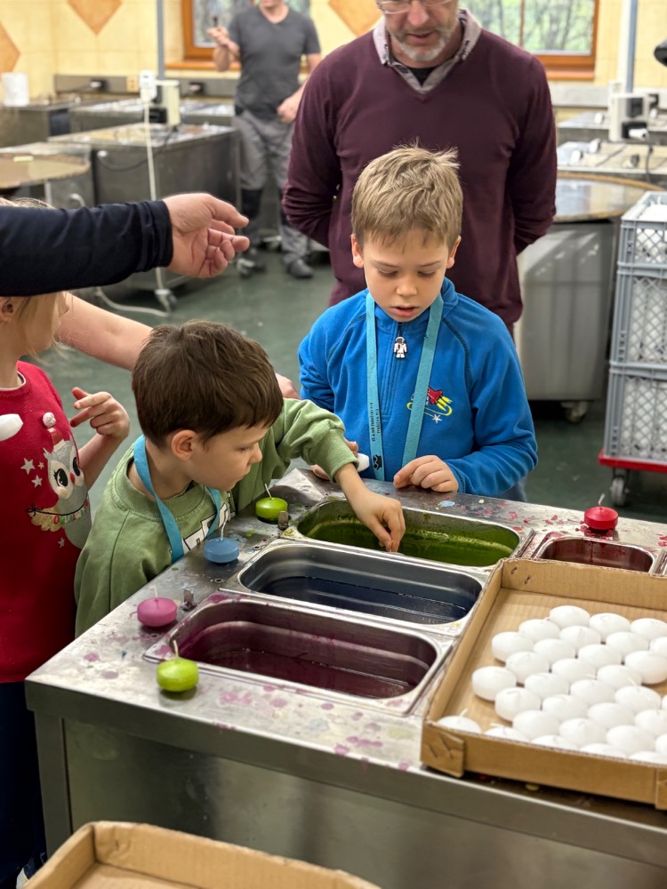 Hned při vstupu nás mile přivítal majitel svíčkárny, který se nám ochotně věnoval po celou dobu návštěvy. S velkým zaujetím nám ukázal, jak vznikají svíčky – od prvních kroků výroby až po jejich finální podobu. Největší obdiv u dětí i dospělých vzbudily speciální edice svíček, které firma vyrábí na zakázku pro zákazníky z celého světa, například do Dubaje či Japonska. Bylo fascinující vidět, jak se tradiční řemeslo propojuje s moderním designem a mezinárodními požadavky.