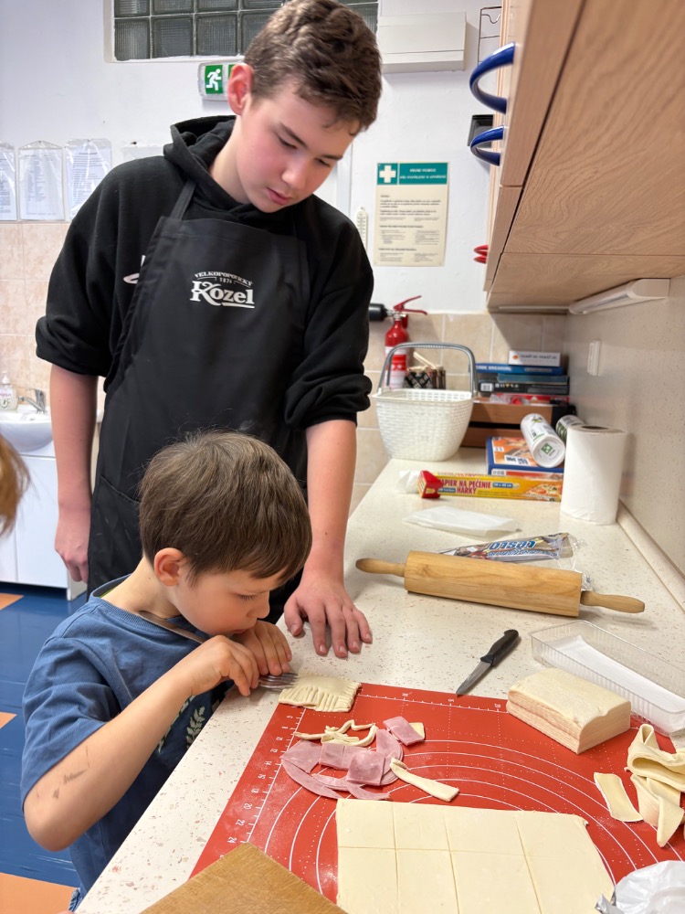 Právě týmová práce byla jedním z nejcennějších momentů celého odpoledne. Starší žáci se ujímali role mentorů, trpělivě pomáhali mladším, vysvětlovali postupy a dohlíželi na bezpečnost i správné pečení. Mladší zase přinášeli nápady, energii a odvahu zkoušet nové kombinace chutí. Každý tým fungoval jako malá pekárna, kde měl každý svou roli a všichni společně směřovali k jedinému cíli – vytvořit něco dobrého a mít z toho radost.