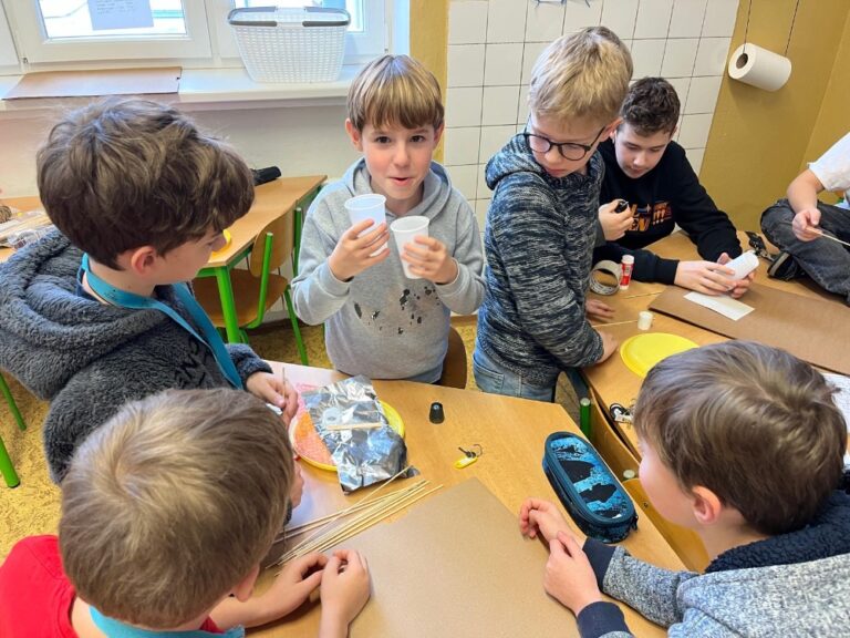 Jakmile byl kód prolomen, čekala je další výzva: postavit vesmírnou raketu, která by je dopravila až na Krypton. Materiály byly čistě pozemské – papír, brčka, karton, špejle, lepicí páska – ale fantazie dětí rozhodně ne. Vznikaly konstrukce elegantní, odvážné i překvapivě technické. Některé rakety připomínaly prototypy NASA, jiné jako by přiletěly z budoucnosti. Každá však nesla podpis svého týmu: kreativitu, spolupráci a chuť překonat hranice možného.