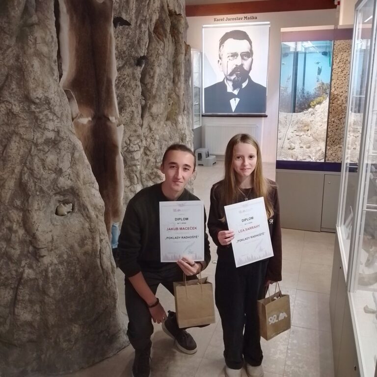 Organizátorky nás velmi mile přivítaly, provedly nás muzeem a seznámily nás s celou řadou zajímavostí. Ocenění žáci obdrželi diplomy a drobné upomínkové předměty, přičemž hlavním dárkem byl krásný barevný nerost. Velkým zážitkem pro nás bylo zjištění, že nejlepší práce jsou v muzeu vystaveny; jejich text je nyní vytištěn na barevném pozadí se siluetou pohoří, což jim dodává na atraktivitě.