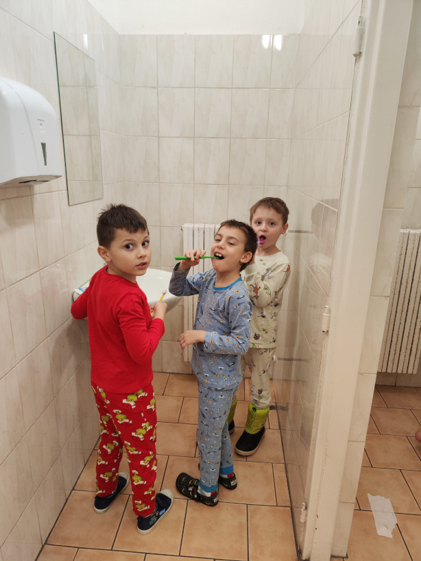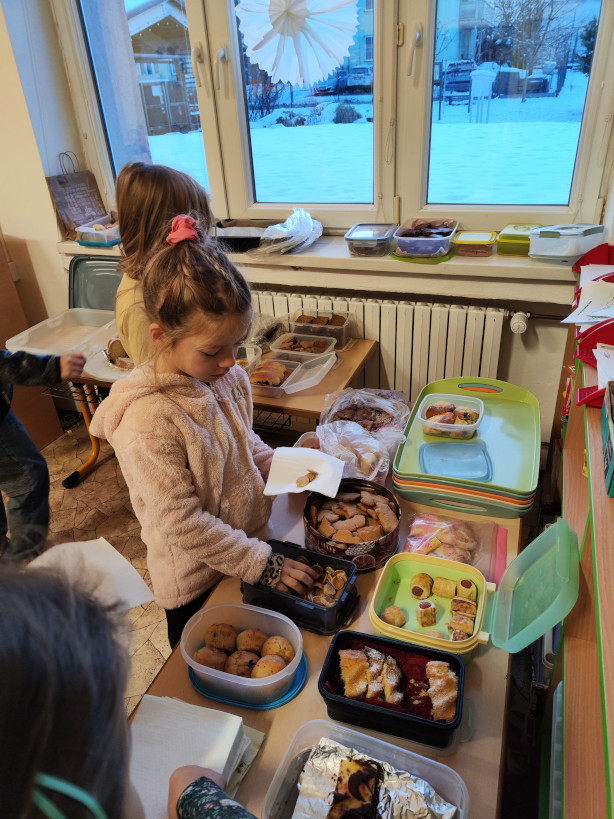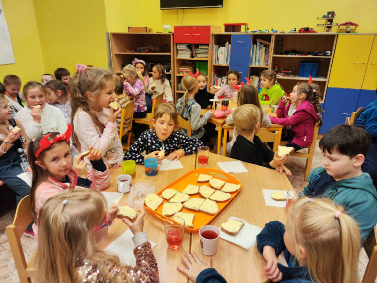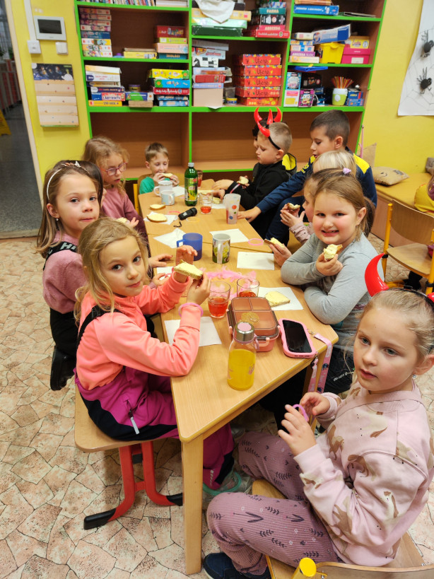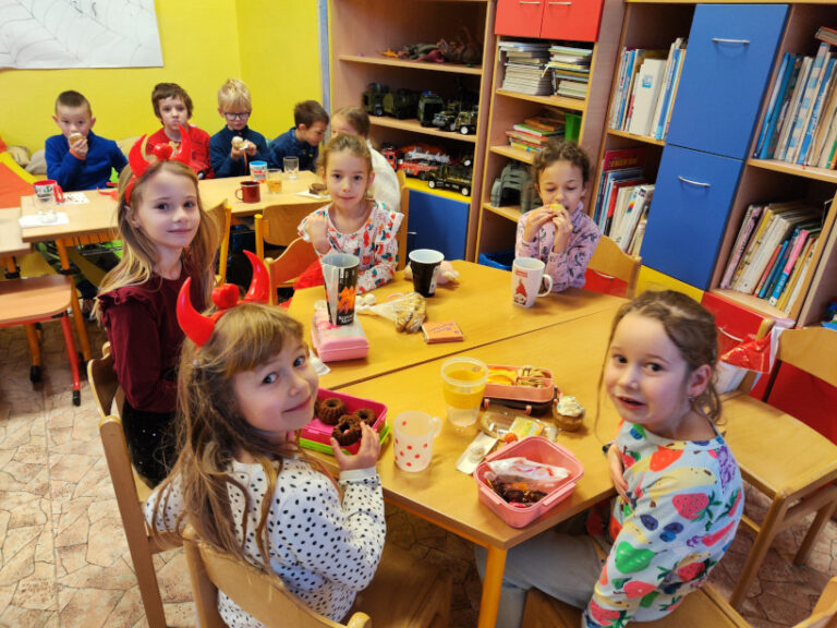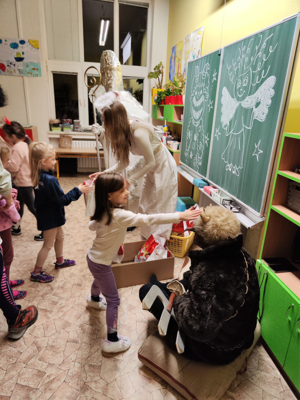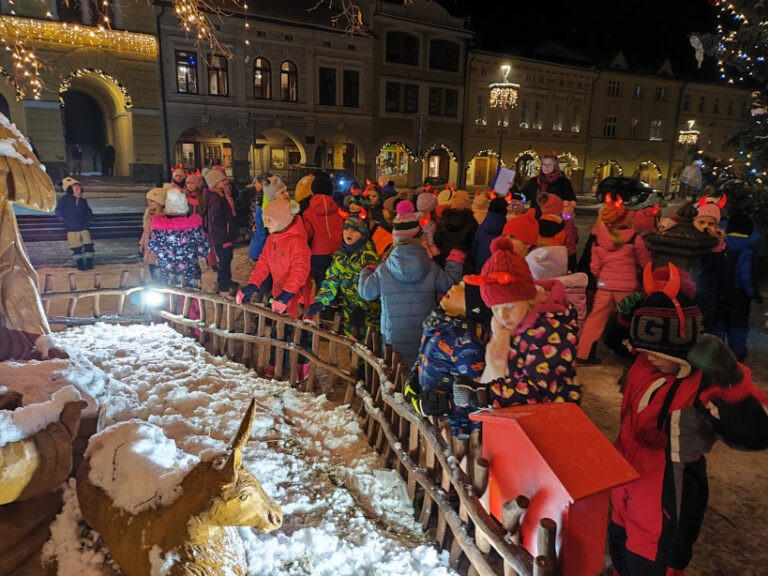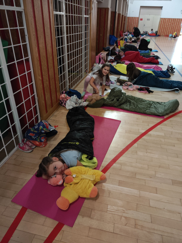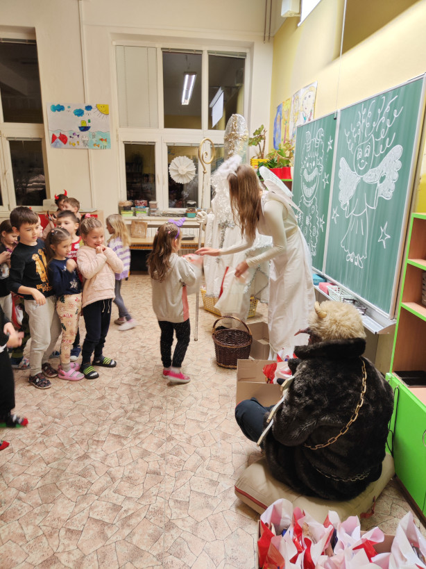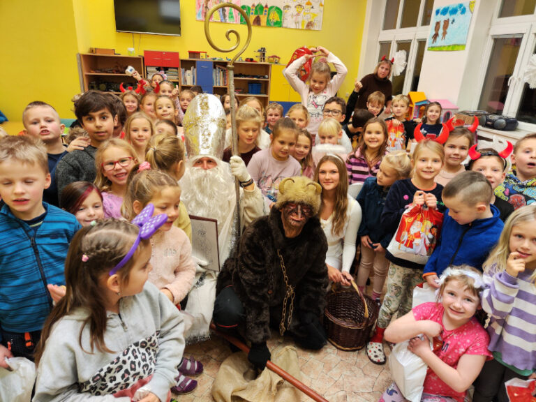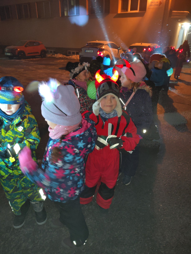 Jak je již naší letitou tradicí, na začátku adventu jsme pořádali ve školní družině mikulášské nocování. Paní vychovatelky přípravu nepodcenily a několik dní jsme trénovali vánoční koledy, písničky a básničky pro Mikuláše. Den D nastal v pátek 28.11. V podvečer se všichni účastníci sešli v herně ŠD. Výbavu, potřebnou k přespání, si děti odložily v tělocvičně. A hurá mezi kamarády. Po večeři a informacích, co nás čeká, jsme se vydali na náměstí. Zde na nás čekal krásně nazdobený a rozsvícený vánoční strom. U mohutného stromu jsme společně zazpívali několik koled. Poté se náš čertovský průvod, ozdobený svítícími rohy a lampióny, vydal na malou procházku po městě. Do školy jsme dorazili s očekáváním, jestli Mikuláš opravdu přijde. Jen co si děti zopakovaly písničky pro Mikuláše, ozvalo se zaklepání na dveře. Ha, Mikuláš je tu! A ne sám. Doprovází jej i čert a anděl. Mikuláš měl s sebou i Knihu hříchů, ze které předčítal dětem jejich „hříšky“. Po ubezpečení, že se malí hříšníci polepší, si Mikuláš se svým doprovodem poslechl, co si malí školáci pro něj připravili. Všechny děti byly obdarovány balíčkem, jehož obsah hned začaly zkoumat. Ti nejodvážnější si dokonce sáhli na čertovy rohy. Mikuláš odešel, balíčky byly rozdány a je třeba se odebrat do svých pelíšků. Převléknout, umýt zuby, zavrtat se do spacáku a poslechnout si pohádku na dobrou noc. Takový byl program ve velké tělocvičně, kde malí nocležníci složili hlavy. Ráno na prvňáčky čekala výborná snídaně. Všichni si mohli vybrat z několika dobrotek, které nám napekly maminky. Po snídani se malí školáčci rozcházeli domů. Doufáme, že i letošní nocování zanechá v dětech spoustu krásných vzpomínek a dojmů. Tak zase za rok!
