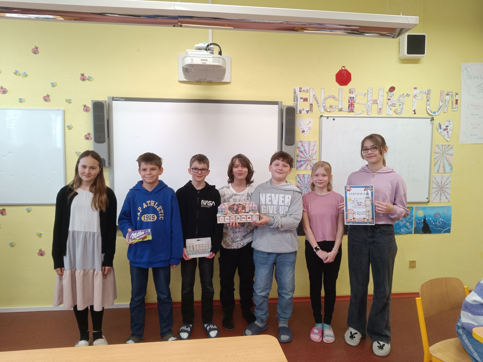Ve čtvrtek 12. 3. 2026 se žáci Jan Babczynski, Hynek Petřík, Nikola Peňová, Marek Sucháček z 5. C, Vojtěch Križák, Adéla Liškova z 5. B a Vilma Hanáková z 5. A zúčastnili soutěže v anglickém jazyce „Cizí jazyk nám není cizí“ na ZŠ Záhuní.