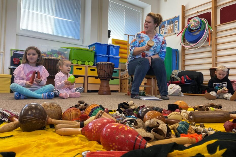 Nikdy není na škodu zkusit něco nového, a tak jsme se tentokrát vydali za zvuky exotických nástrojů a vyzkoušeli si pravou muzikoterapii s africkými bubny, fujarami a kalimbami. Vnímali jsme svůj dech skrze hudbu, seznamovali se s dramatickými hrami doprovázenými hrou na buben a zazpívali si nové i všem známé lidové písně. Děti měly možnost vybírat z pestré škály nástrojů, které se používají například v Africe či Asii. A proč vlastně dětem muzikoterapie prospívá? Pomáhá jim uvolnit se, zlepšuje celkovou duševní pohodu, umožňuje vyjádřit pocity, které se těžko popisují slovy, a rozvíjí sociální interakci i sebevědomí. Přispívá také k celkovému pocitu životní spokojenosti. Po bubnování, chrastění a cinkání následovala relaxační chvilka s ozvučenou pohádkou, která děti příjemně zklidnila. Muzikoterapie se dětem náramně líbila – a i my už se těšíme na další veselé setkání s hudbou.