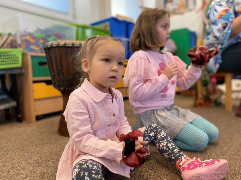 Nikdy není na škodu zkusit něco nového, a tak jsme se tentokrát vydali za zvuky exotických nástrojů a vyzkoušeli si pravou muzikoterapii s africkými bubny, fujarami a kalimbami. Vnímali jsme svůj dech skrze hudbu, seznamovali se s dramatickými hrami doprovázenými hrou na buben a zazpívali si nové i všem známé lidové písně. Děti měly možnost vybírat z pestré škály nástrojů, které se používají například v Africe či Asii. A proč vlastně dětem muzikoterapie prospívá? Pomáhá jim uvolnit se, zlepšuje celkovou duševní pohodu, umožňuje vyjádřit pocity, které se těžko popisují slovy, a rozvíjí sociální interakci i sebevědomí. Přispívá také k celkovému pocitu životní spokojenosti. Po bubnování, chrastění a cinkání následovala relaxační chvilka s ozvučenou pohádkou, která děti příjemně zklidnila. Muzikoterapie se dětem náramně líbila – a i my už se těšíme na další veselé setkání s hudbou.