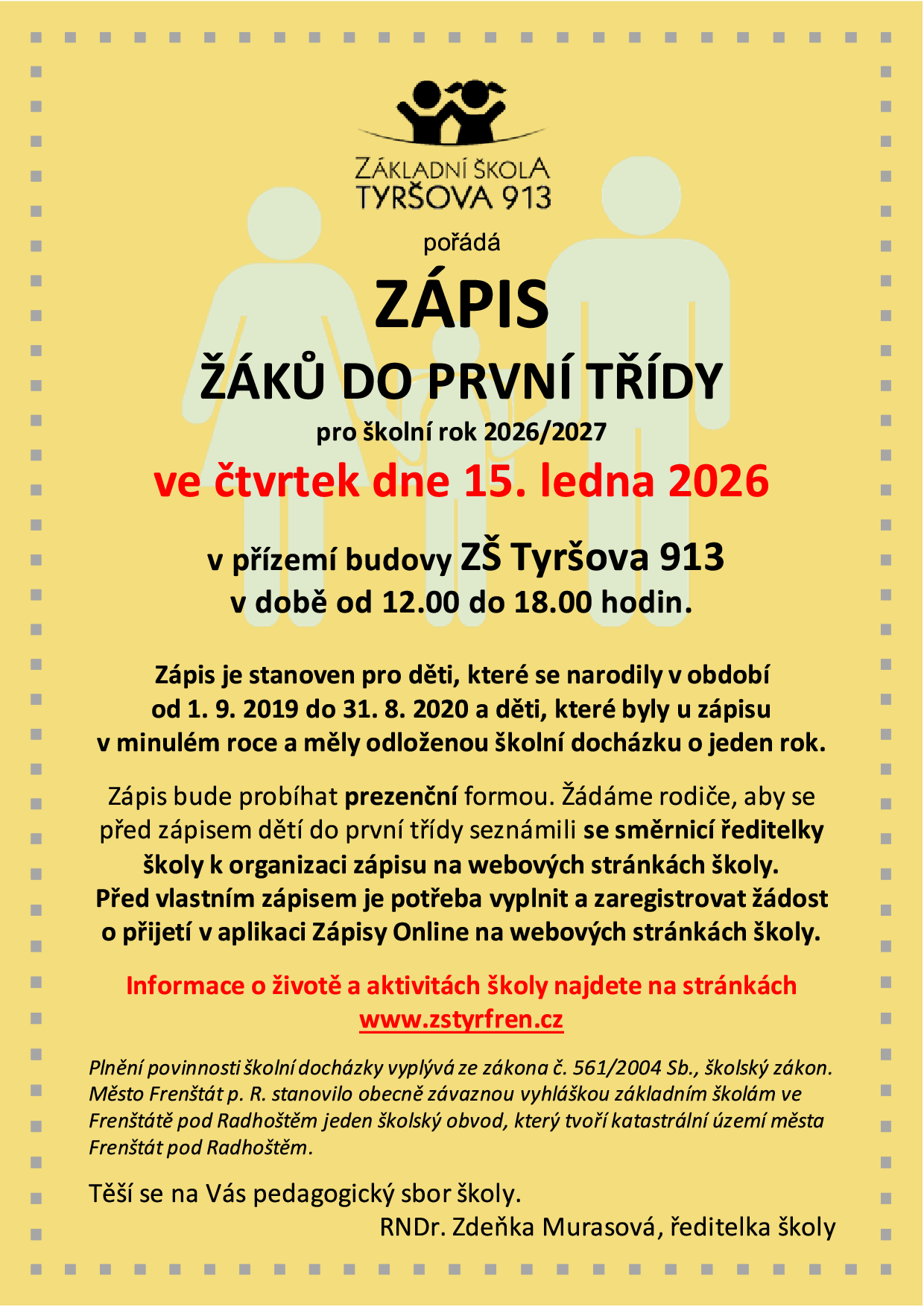 Směrnice k organizaci a průběhu zápisu pro školní rok 2026/2027 zde.